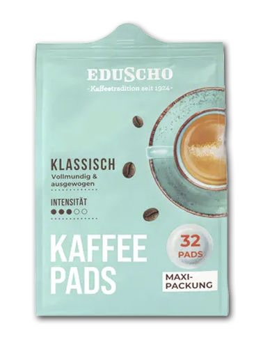 Eduscho Klassisch 32 Pads, vollmundig und ausgewogen. Diese Pads sind genau das Richtige für dich! Ausgewogenen Kaffee unbeschwert & einfach genießen. Verführung auf Knopfdruck!