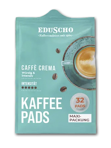 Eduscho Caffè Crema 32 Pads, würzig & intensiv. Du magst es kraftvoll, verlockend und intensiv? Die Caffè Crema Pads bescheren dir Genuss auf Knopfdruck. Goldbraune Crema zum verlieben!