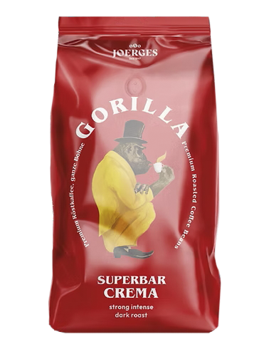 Gorilla Superbar Crema, 1 kg Kaffeebohnen, der Allrounder Crema, mit Noten von Beeren, Nüssen und Schokolade, mit einem Hauch von Honig. Kaffeebohnen für köstliche Kaffeespezialitäten mit perfekter Crema.